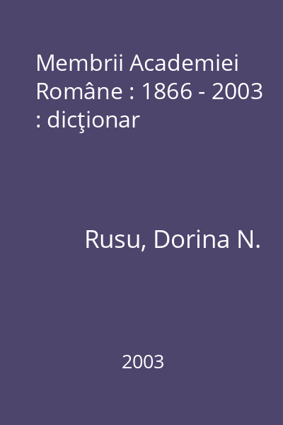 Prima prezentare de carte sub acest generic aparţine directorului bibliotecii, prof. dr. Teodor Ardelean, care este şi iniţiatorul acestei acţiuni. Subiectul prezentării: Membrii Academiei Române : 1866 – 2003 : dicţionar. Dr. Dorina N. Rusu ; Ed. revăzută şi adăugită cu un Cuvînt înainte de Acad. Eugen Simion. Ed. a 3-a, rev. şi ad: Bucureşti : Editura Academiei Române : Editura Enciclopedică, 2003. 1160 p. : foto. Academia Română. ISBN 973-27-1051-9. (cota R IV 140).