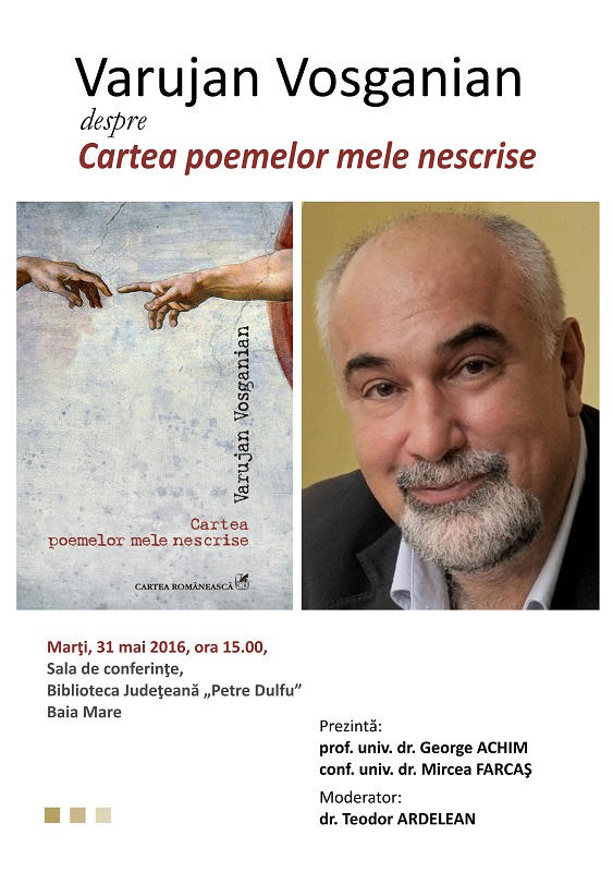 Omul politic şi scriitorul Varujan Vosganian va lansa cel mai nou volum apărut la Editura Cartea Românească intitulat „Cartea poemelor mele nescrise”.