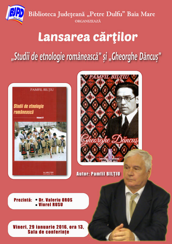 Va avea loc lansarea cărţilor „Studii de etnologie românească – vol. IV” şi „Gheorghe Dăncuş„, ambele purtând semnătura etnologului Pamfil Bilţiu.