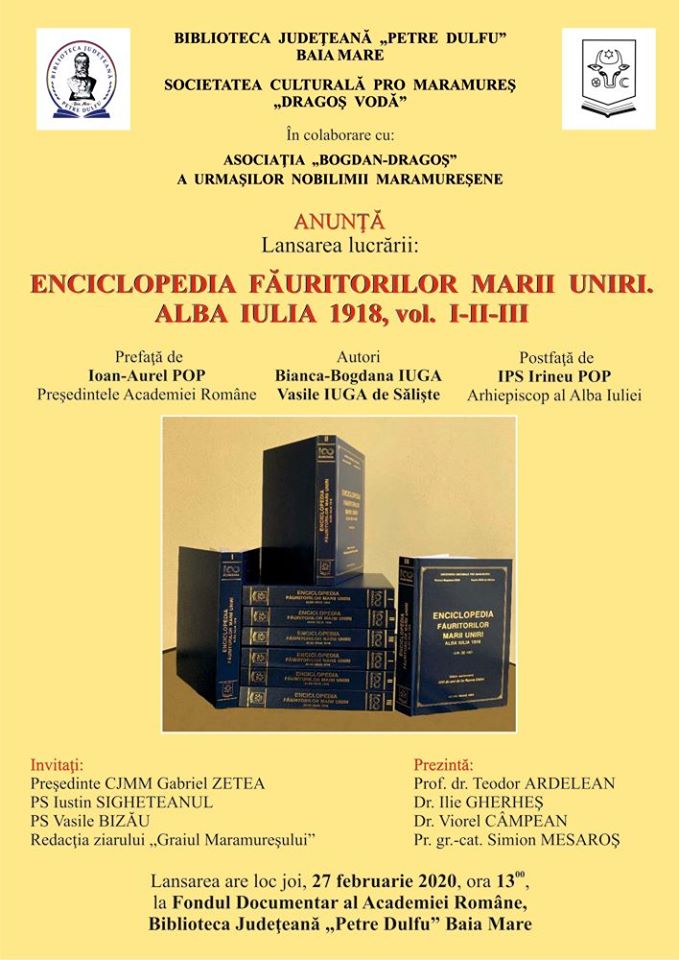 Biblioteca Județeană „Petre Dulfu” și Societatea Culturală Pro Maramureș „Dragoș Vodă” în colaborare cu Asociația „Bogdan-Dragoș” a Urmașilor Nobilimii Maramureșene organizează evenimentul de lansare a lucrării: