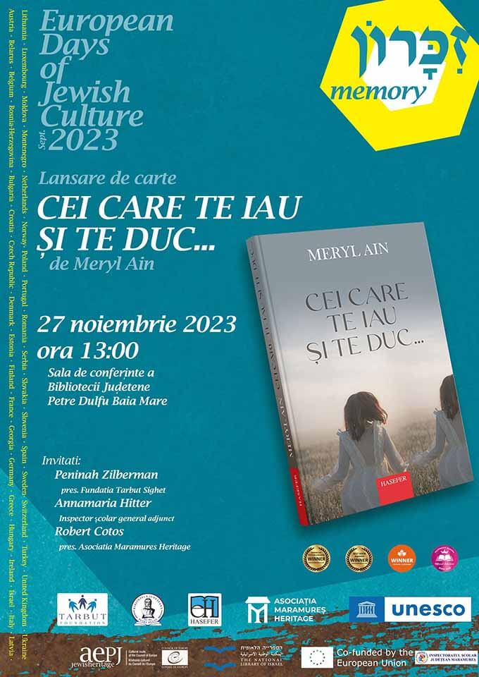 Fundația Tarbut din Sighetu Marmației în colaborare cu Biblioteca Județeană „Petre Dulfu” și Asociația Maramureș Heritage organizează lansarea cărții „Cei care te iau și te duc”, scrisă de Meryl Ain. Evenimentul are loc în cadrul Zilelor europene ale culturii evreiești.