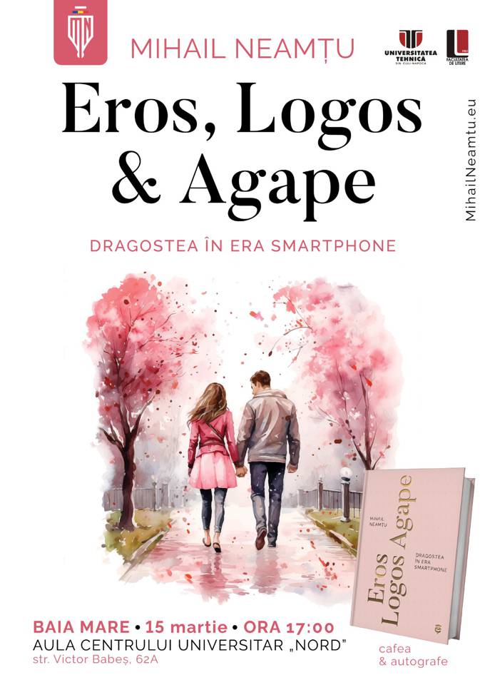 Facultatea de Litere – Centrul Universitar Nord din Baia Mare vă invită la lansarea cărții „Eros, Logos & Agape. Dragostea în era smartphone”, autor Mihail Neamțu.