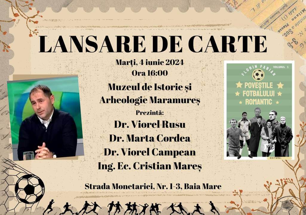 Marți, 4 iunie 2024, ora 16, la Muzeul Județean de Istorie și Arheologie Maramureș din Baia Mare va avea loc lansarea cărții „Poveștile fotbalului romantic”, scrisă de Florin Fabian, fost jucător și antrenor al FC Baia Mare, apărută la Editura Marist în 2024.