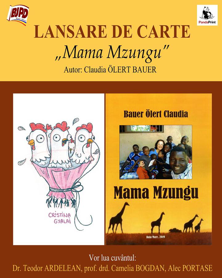 Va avea loc lansarea cărţii „Mama Mzungu”, semnată de Claudia Bauer Ölert, apărută sub egida Editurii Casa Corpului Didactic Baia Mare şi tipărită de Panda Print, Baia Mare, 2019.