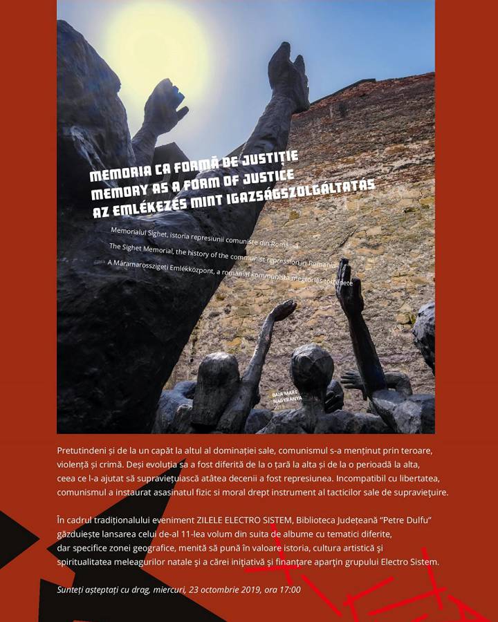 Va avea loc lansarea albumului „Memoria ca formă de justiţie. Memorialul Sighet, istoria represiunii comuniste din România”, publicat de Ştefan Blaskó, Baia Mare, 2019.