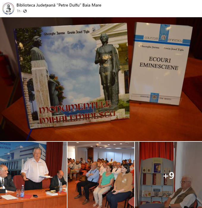 O altă carte-tezaur lansată, în Sala de conferințe a Bibliotecii Județene „Petre Dulfu”, este semnată de Gheorghe Jurma și Erwin Josef Țigla. Albumul „Monumentele Eminescu”, editat de Editura Banatul montan din Reșița, în condiții tipografice de foarte bună calitate, „propune o panoramă reprezentativă a monumentelor închinate lui Eminescu (autorii)”.