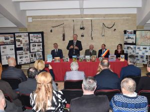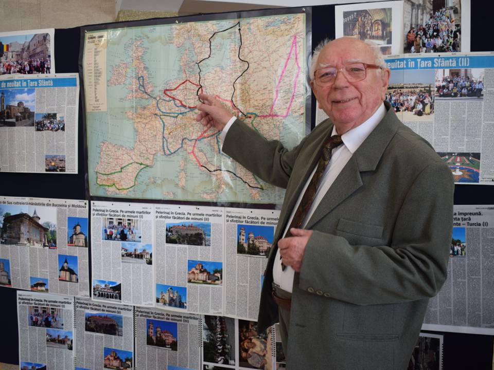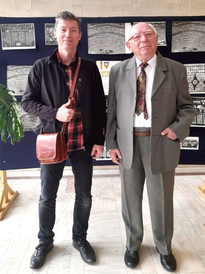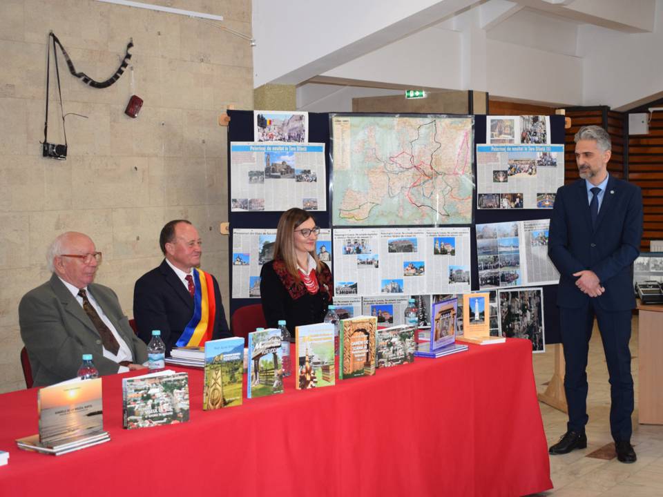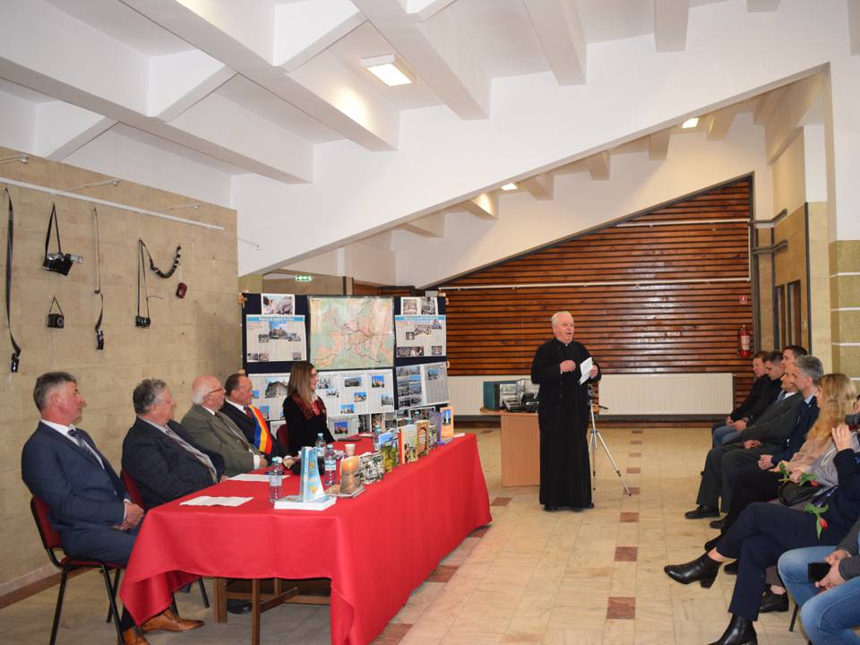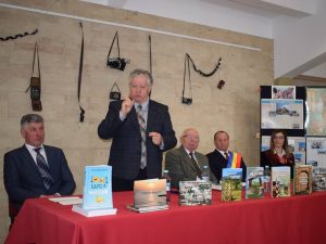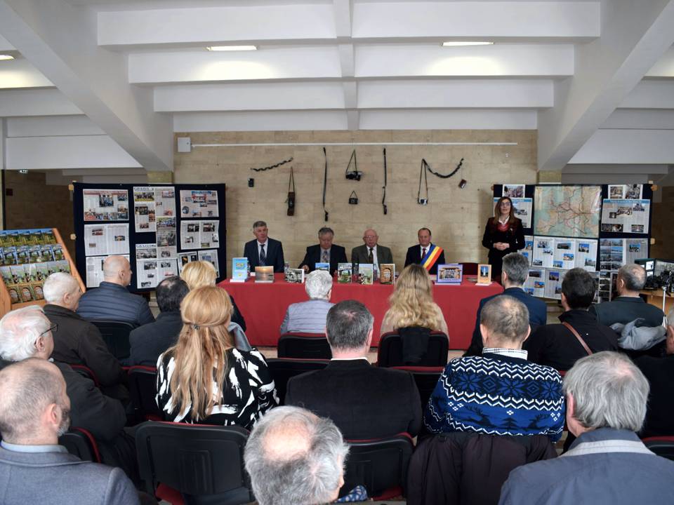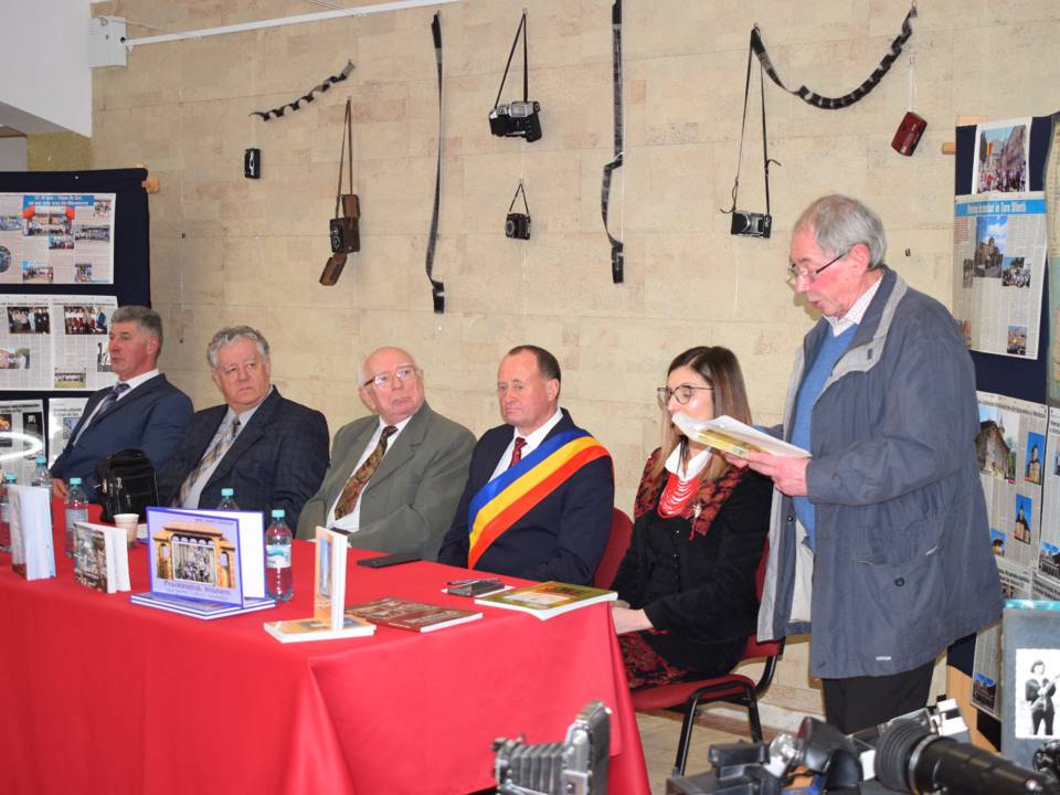 Dintru început, delegația Bibliotecii Județene „Petre Dulfu” Baia Mare, condusă de domnul director dr. Teodor Ardelean, pe care l-au însoțit Adrian Man – designer web, Dorin Mutter – administrator și Gabriel Stan – bibliotecar, a fost întâmpinată de însuși protagonistul evenimentului, care avea deja totul pregătit, deși am ajuns devreme, respectiv sala Casei de Cultură Vișeu de Sus a fost decorată cu câteva expoziții care spun multe despre polivalentul autor: cele 9 cărți aliniate frumos pe masa prezidiului; în spate, pe perete, atârnate câteva aparate de fotografiat din colecția autorului, pe lângă cele expuse pe o masă alăturată, dovadă elocventă a unei pasiuni de o viață; pe flancuri, două panouri cu o hartă ilustrativă și decupaje de ziar cu pelerinajele prin țară, prin Europa și în Țara Sfântă, povestite tot de autor în cotidianul Graiul Maramureșului, ziar la care a colaborat nu mai puțin de 40 de ani; în altă parte, un colaj de fotografii cu absolvenți de-ai Domniei Sale de-a lungul unei cariere de 42 de ani în învățământ (începând cu anul 1963 și până la pensionare, toți la Liceul „Bogdan-Vodă” din Vișeu de Sus); nu în ultimul rând, câteva clasoare cu timbre filatelice colecționate pe parcursul anilor, pasiune pe care i-o împărtășesc.