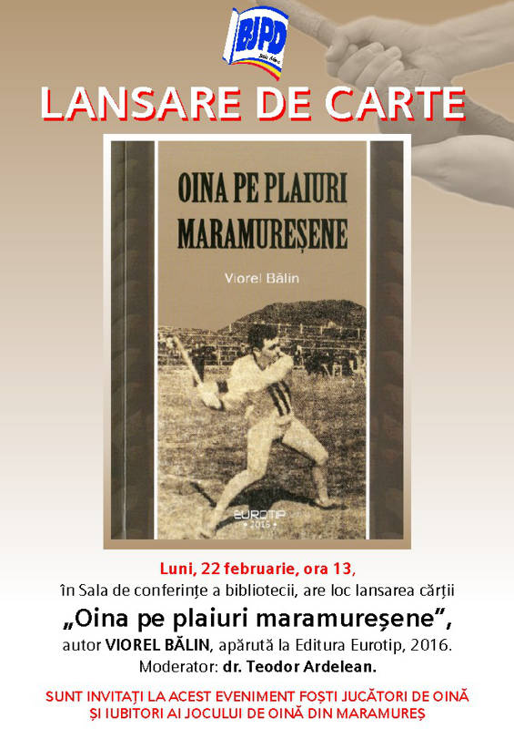Va avea loc lansarea cărţii „Oina pe plaiuri maramureşene”, autor Viorel Bălin, apărută la Editura Eurotip, 2016.