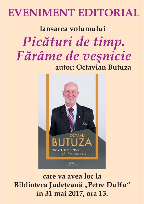 Va avea loc lansarea volumului „Picături de timp. Fărâme de veşnicie”, Editura Eurotip, 2017, autor Octavian Butuza. Volumul este constituit din emisiuni TV realizate de regretatul jurnalist, în perioada 2013-2015.