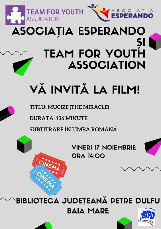 Asociaţia Esperando în colaborare cu Asociaţia Team4Youth şi Biblioteca Judeţeană „Petre Dulfu” organizează proiecţia filmului motivaţional „Mucize (The Miracle)”, pentru beneficiarii programelor asociaţiei Esperando. Evenimentul are loc în cadrul „Zilei Învăţării Non-formale”.