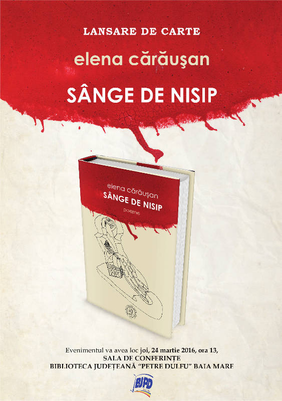 Va avea loc lansarea volumului de poezii „Sânge de nisip”, de Elena Cărăuşan.