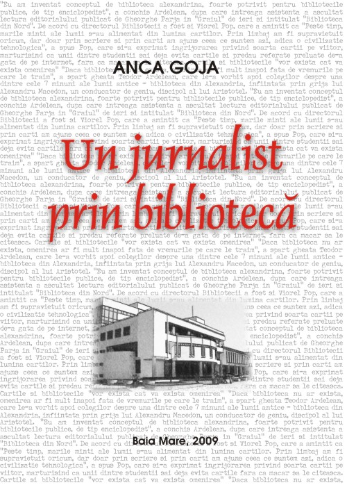BIBLIOTECA JUDEŢEANĂ «PETRE DULFU» BAIA MARE vă invită miercuri 18 martie 2009, ora 13.00, în sala de conferinţe, la lansarea cărţii “Un jurnalist prin bibliotecă” de ANCA GOJA.