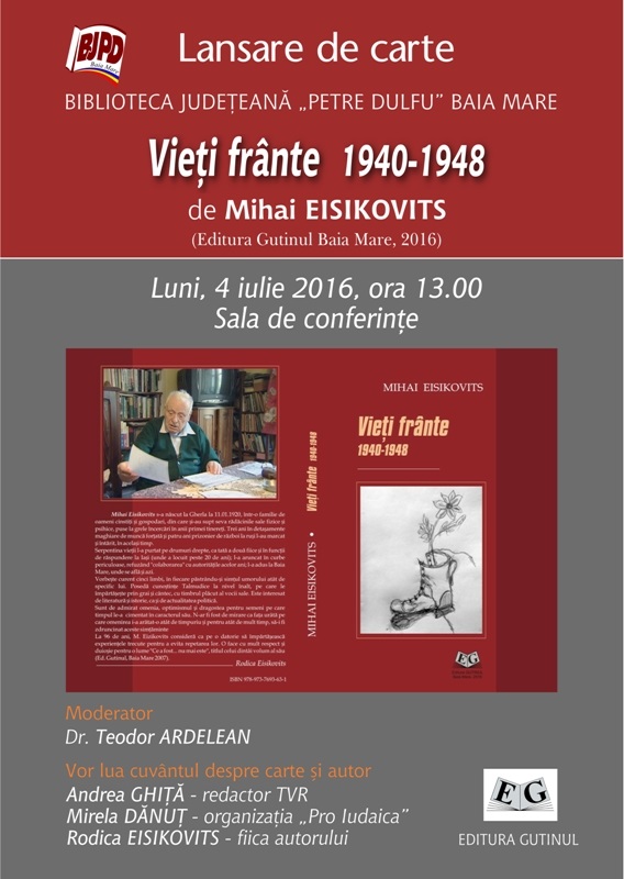 Va avea loc lansarea cărţii „Vieţi frânte: 1940-1948„, de Mihai Eisikovits, apărută la Editura Gutinul, Baia Mare, 2016.