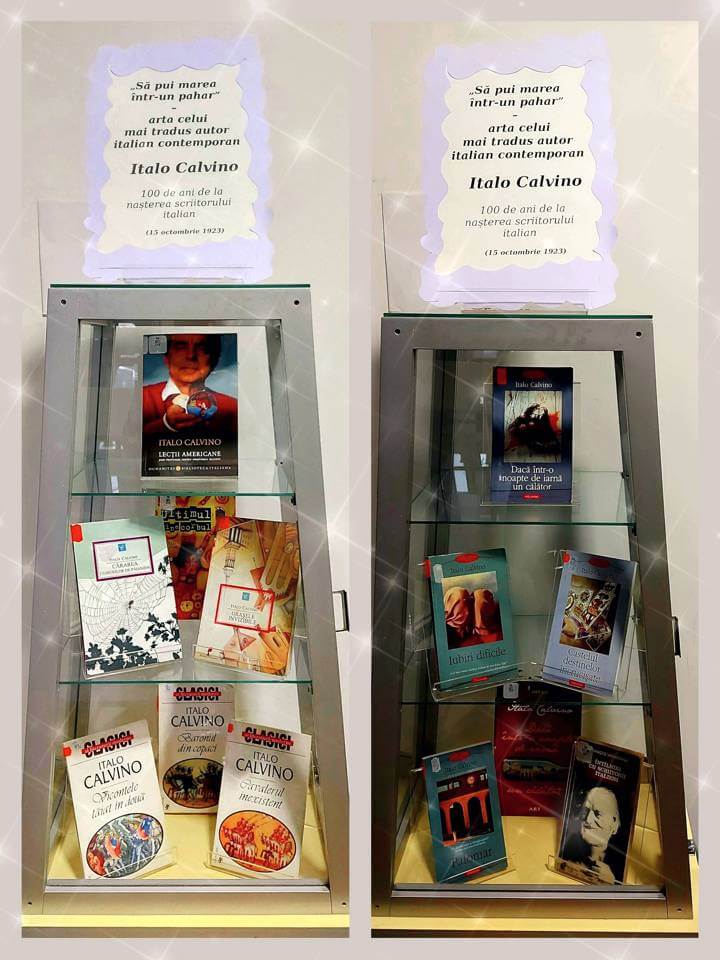 Vitrină de carte la Compartimentul „Multiculturalia”: „Să pui marea într-un pahar. Arta celui mai tradus autor italian contemporan Italo Calvino” – 100 de ani de la nașterea scriitorului italian (15 octombrie 1923).
