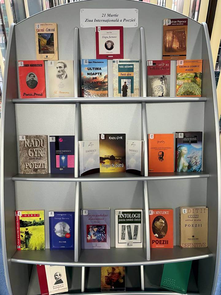 Poezia – „retina sufletească a ființei umane” – 21 Martie Ziua Internațională a Poeziei – expoziție de carte realizată la Sala de lectură Carte curentă.
