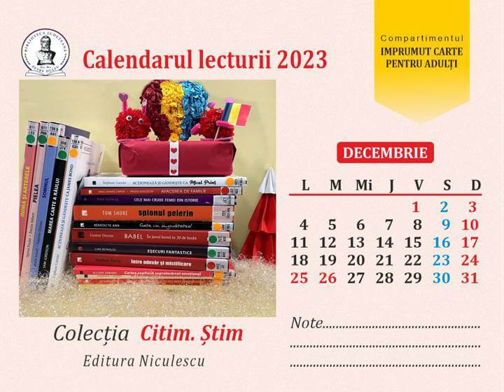 „Calendarul lecturii”, expoziţie de carte realizată la Compartimentul Împrumut carte pentru adulţi: DECEMBRIE – Colecția Citim. Știm!