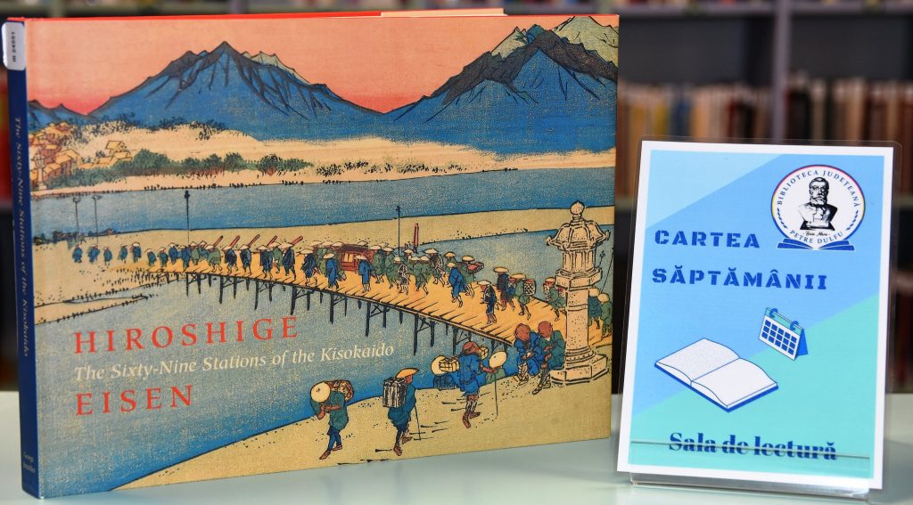 „Utagawa Hiroshige (1797–1858) și Keisai Eisen (1790–1848), artiști maeștri ai tradiției Ukiyo-e din Japonia, au creat o serie de imprimeuri care prezintă Kisokaido, autostrada care leagă Edo și Kyoto, precum și cele 69 de stații poștale ale sale, unde călătorii puteau admira peisajul, face cumpărături, rămâne peste noapte și distra. În imagini color alcătuite în mod strălucit, Eisen și Hiroshige surprind aspectul și spiritul fiecărei stații, creând ceea ce expertul japonez în artă Izzard declară că este un „tur de forță al viziunii artistice și al măiestriei în imprimare”.