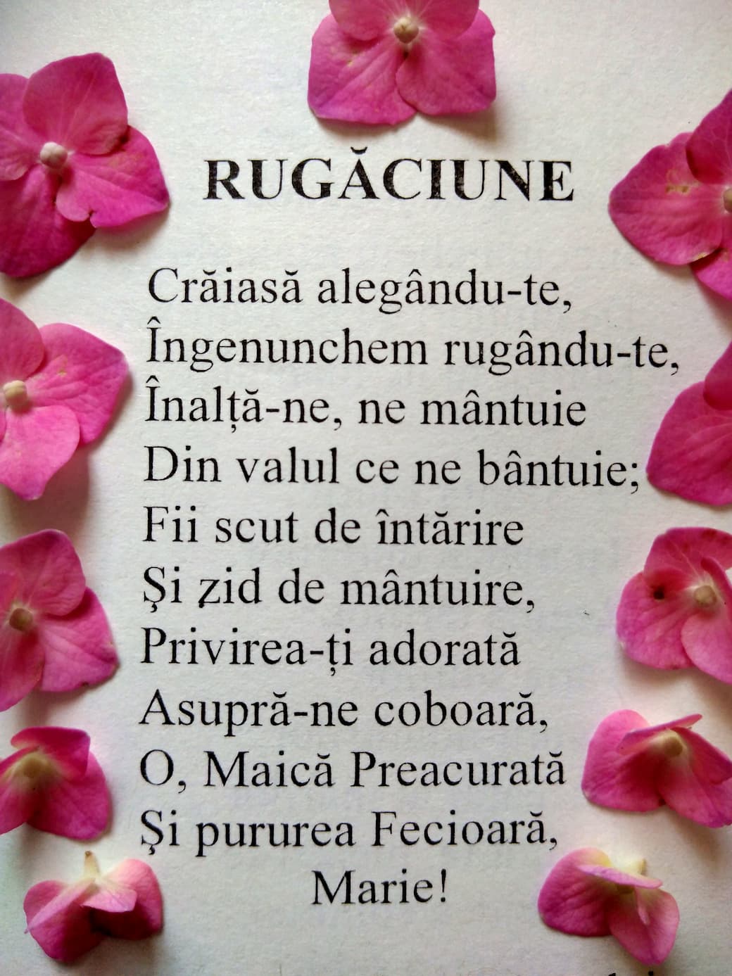 Aceste frumoase versuri, închinate Preasfintei Fecioare Maria, au fost recitate în limba română de