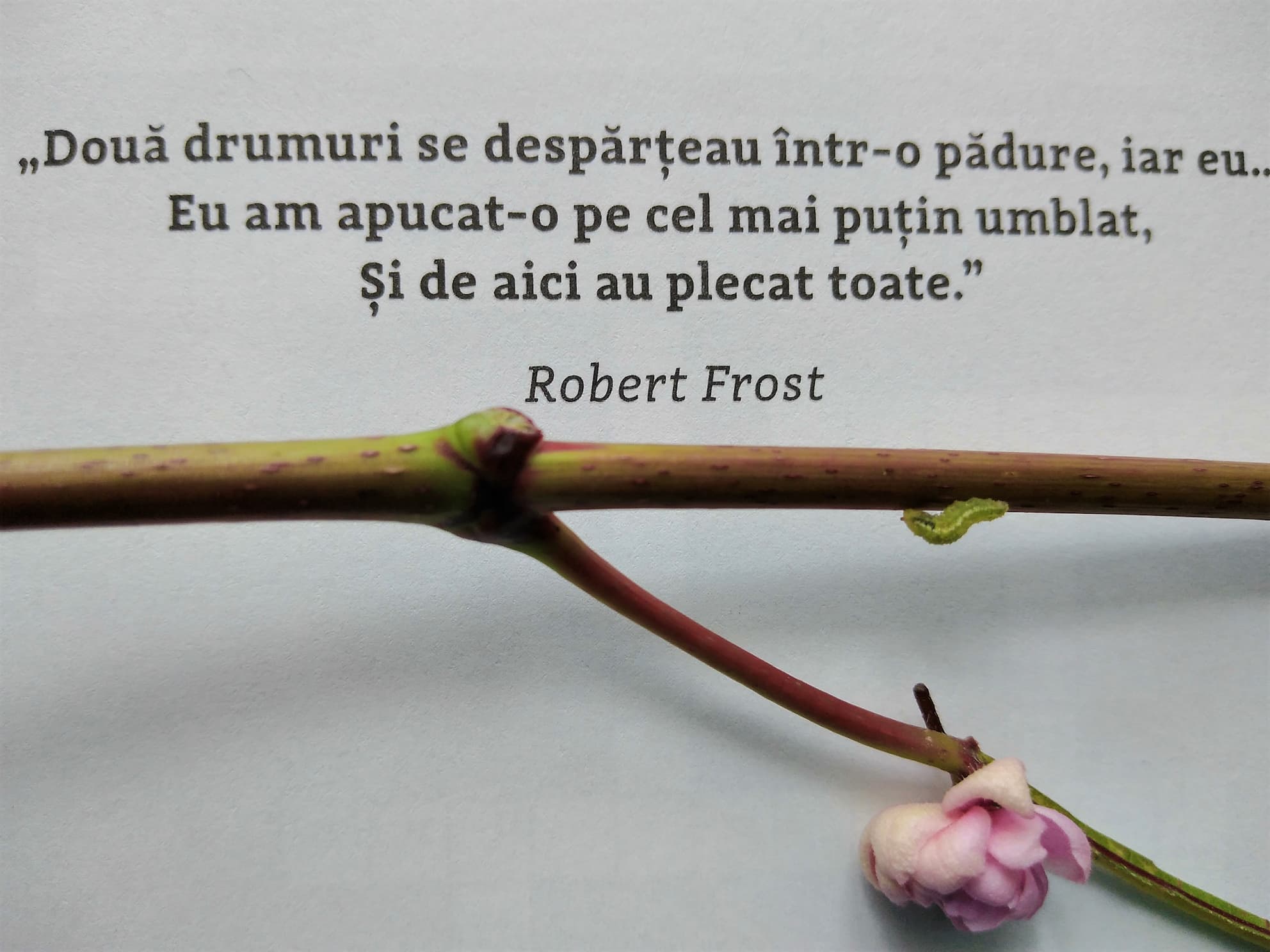 Poteca îngustă, mai puțin umblată, ți-a inspirat de la început încredere, e bine că ai ales-o…! Când drumul se va îngusta și mai mult, iar tu nu vei renunța să înaintezi, undeva, pe Cale, îți va apărea și Semnul care îți va confirma că Alegerea ta nu a fost una greșită… Alegeri pe care ai încercat să le faci pe tot parcursul Călătoriei Vieții, de la Început… la toate Răspântiile ce le-ai întâlnit… și până la Sfârșit…