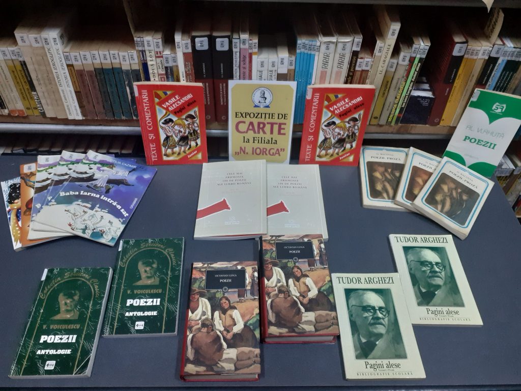 ,,Iarna în operele scriitorilor” – expoziţie de carte tematică săptămânală, realizată pentru a scoate în evidenţă cele mai frumoase poezii despre anotimpul Iarna, care se regăsesc în colecţiile Filialei „Nicolae Iorga”.