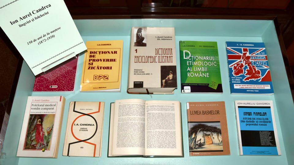 Ion Aurel Candrea – lingvist și folclorist – 150 de ani de la naştere (1872 – 1950) – vitrină de carte realizată la Sala de lectură Carte curentă.
