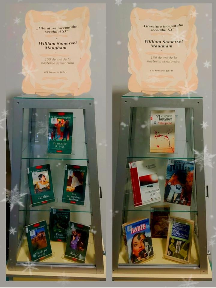 Vitrină de carte la Compartimentul „Multiculturalia”: „Literatura începutului secolului XX” – William Somerset Maugham – unul dintre cei mai cunoscuți scriitori britanici ai secolului XX, romancier, dramaturg şi autor de proză scurtă – 150 de ani de la nașterea scriitorului (25 ianuarie 1874).