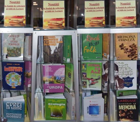 Noutăți în fondul de referință al Sălii de lectură – vitrină de carte realizată la Sala de lectură Carte curentă:
