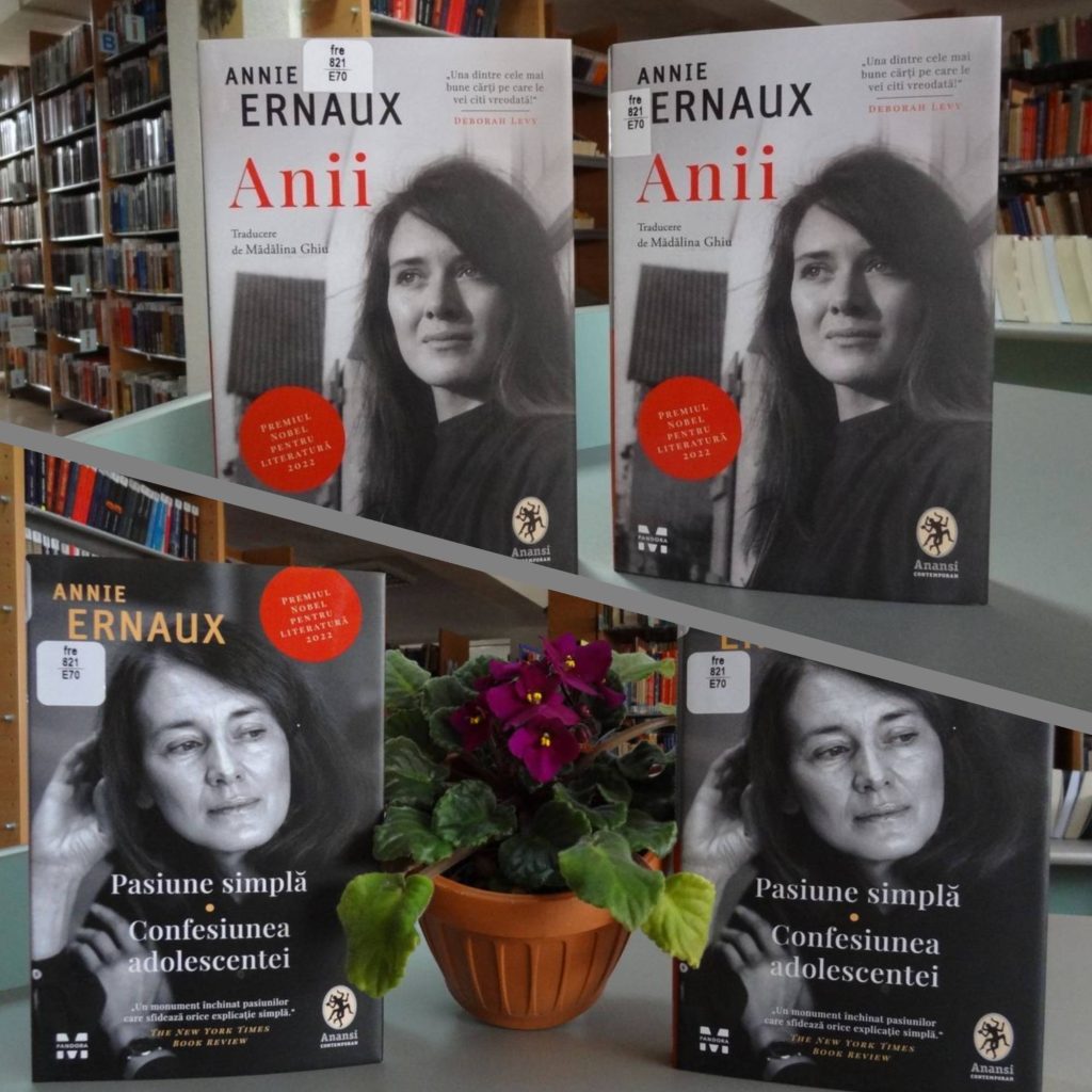 Câștigătoare a Premiului Nobel pentru Literatură în 2022, Annie Ernaux este prezentă în colecțiile bibliotecii cu patru volume traduse și publicate recent de către Editura Pandora M. Provenită dintr-un context social modest, autoarea își concentrează efortul literar înspre explorarea relației individului cu mediul în care evoluează, într-o operă care valorizează atât componenta autobiografică cât și pe cea de analiză sociologică, rezultând o operă ce pune în evidență căile prin care memoria personală este supusă constrângerilor colective.
