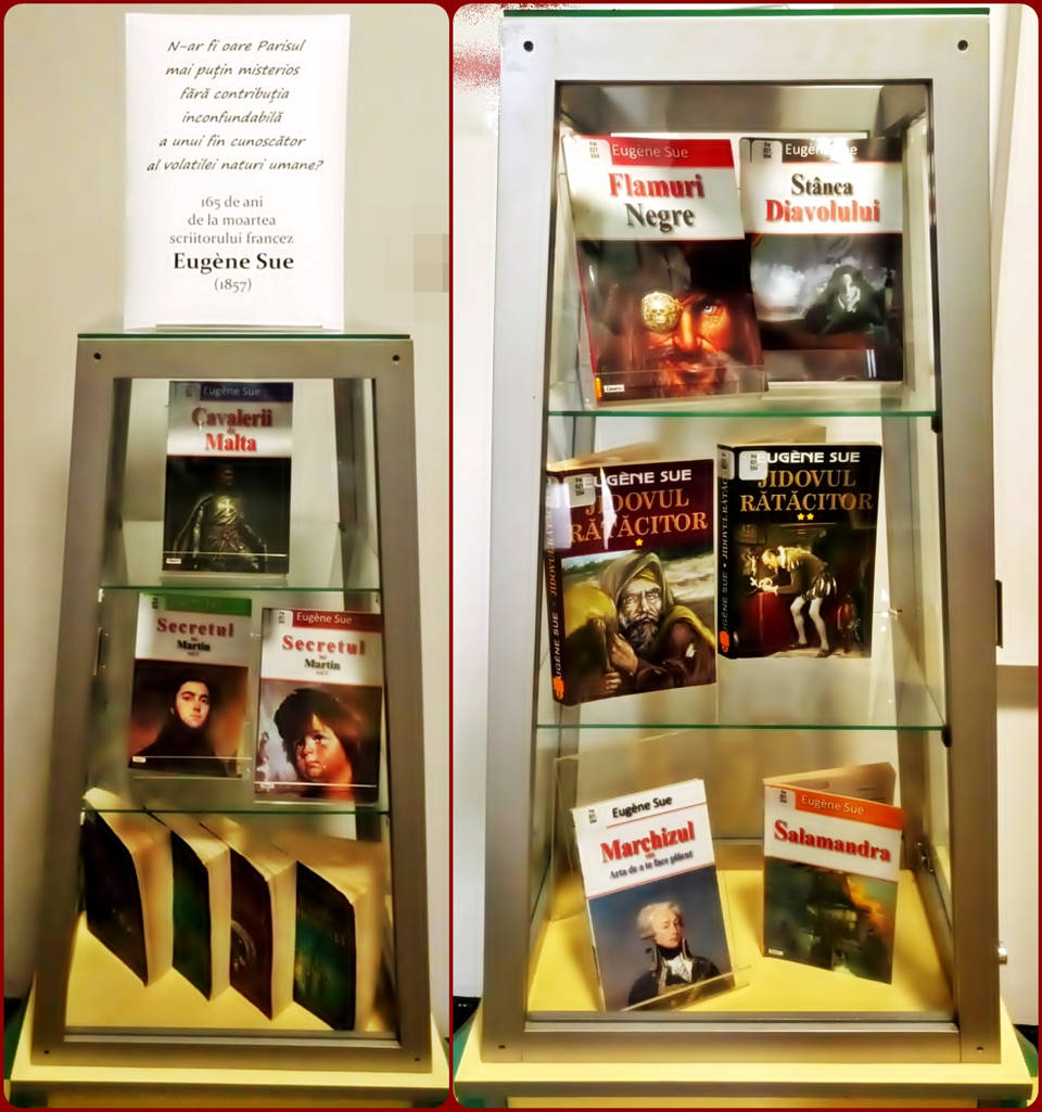 Vitrină de carte la Compartimentul Multiculturalia, 3 august: „N-ar fi oare Parisul mai puțin misterios fără contribuția inconfundabilă a unui fin cunoscător al volatilei naturi umane?” – 165 de ani de la moartea scriitorului francez Eugène Sue (1857).