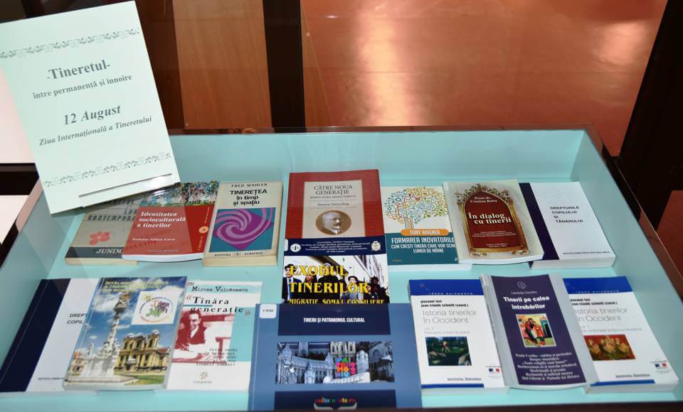 Tineretul între permanență și înnoire – 12 August Ziua Internațională a Tineretului – vitrină de carte realizată la Sala de lectură carte.