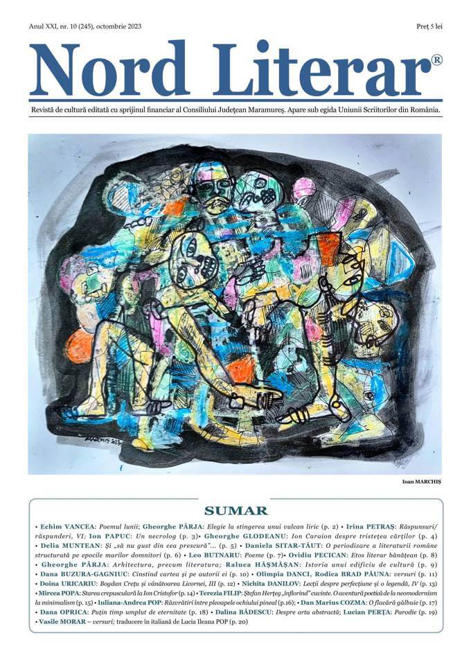 Poemul lunii aparține lui Echim Vancea, iar acest număr este ilustrat cu grafică aparținând artistului Ioan Marchiș. (Dana Buzura-Gagniuc)