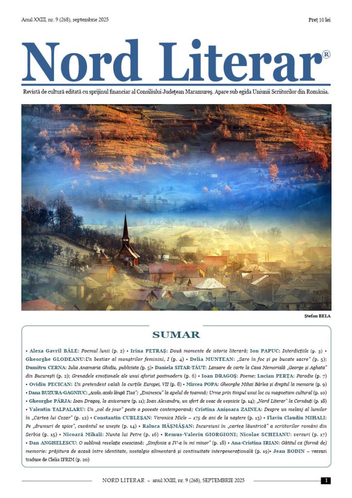 A apărut numărul 268 al revistei de cultură „Nord Literar”. Sunt douăzeci de pagini de critică, poezie, proză, eseu, actualitate literară, în această publicație lunară care poartă girul Uniunii Scriitorilor din România.