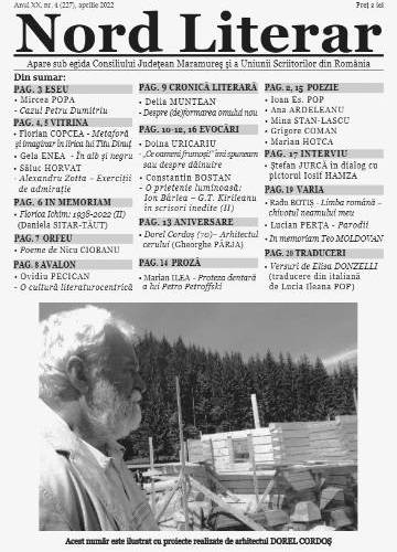 Semnalăm apariția numărului 4 (227), aprilie 2022 al revistei băimărene „Nord Literar”, revistă de cultură ce apare sub egida Consiliului Județean Maramureș și a Uniunii Scriitorilor din România.