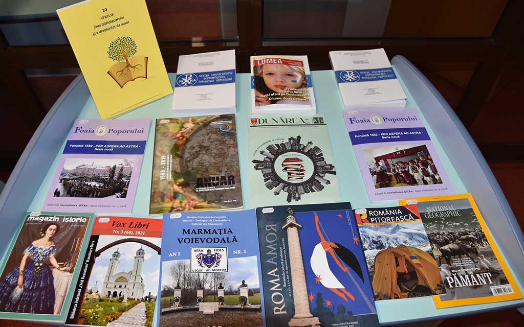 23 Aprilie – Ziua Mondială a Cărţii şi a Drepturilor de Autor. Ziua Bibliotecarului din România – expoziţie de reviste realizată de Compartimentul Sala de lectură Periodice.