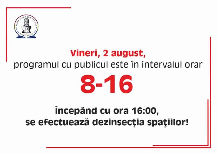 Vineri, 2 august, programul cu publicul este în intervalul 8-16.