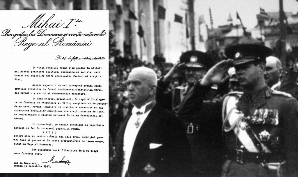 30 decembrie 1947 – Abdicarea Regelui Mihai. Proclamarea Republicii Populare Române