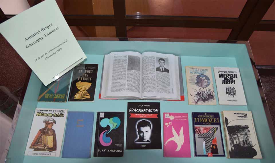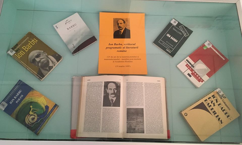 Poet și matematician, membru post-mortem al Academiei Române. Biblioteca Judeţeană „Petre Dulfu” Baia Mare, Sala de lectură Carte curentă – vitrină de carte