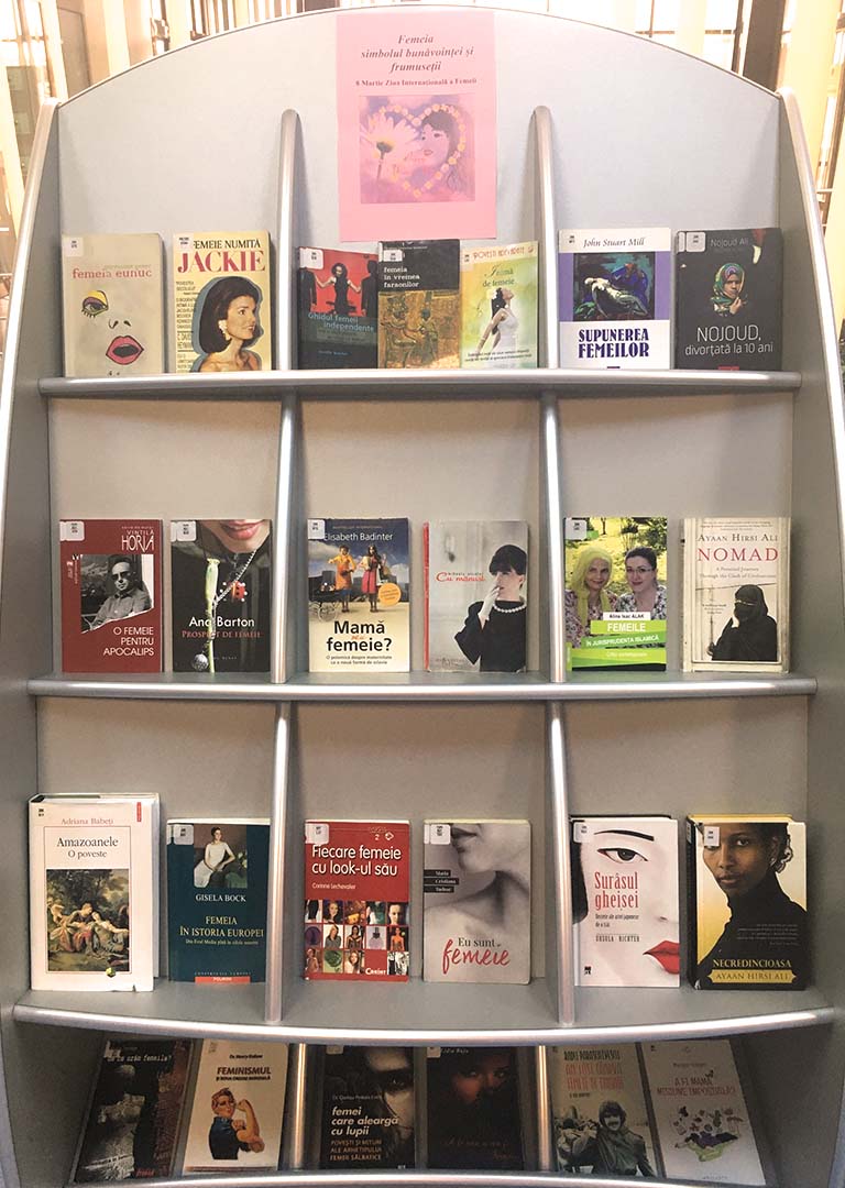 Ziua femeii, marcată pe 8 martie, este o sărbătoare cu totul specială prin care sărbătorim femeile din lumea întreagă: mame, soții sau persoane apropiate. Este un moment cu totul special, prin care ne arătăm aprecierea față de femeile din viața noastră. Ziua Internațională a Femeii, a fost la începuturi o expresie a dorinței femeilor muncitoare de dobândire a unor drepturi, însă, de-a lungul timpului, s-a transformat într-un prilej de sărbătorire a feminității, indiferent de religie și rasă. (Vitrina de carte)