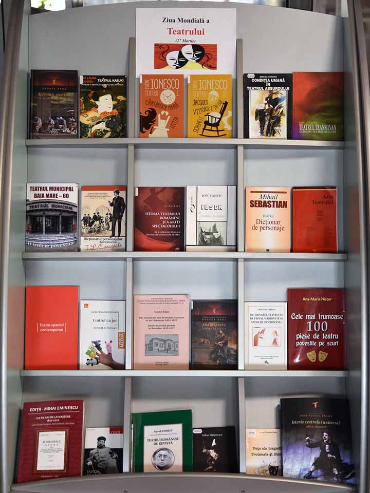 La 27 martie, începând cu anul 1961, artiştii din lumea întreagă celebrează Ziua Mondială a Teatrului. Sărbătoarea este un moment de recunoaștere a forţei de comunicare pe care o are teatrul, dincolo de toate frontierele geografice sau culturale, lingvistice, religioase sau politice. Biblioteca Judeţeană „Petre Dulfu” Baia Mare, Sala de lectură Carte curentă: Teatrul, izvor de fantezie creatoare – expoziție de carte