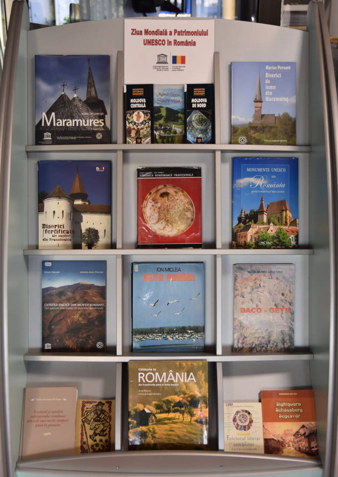 Patrimoniul mondial UNESCO cuprinde totalitatea celor mai importante situri culturale și naturale, semnificative din punctul de vedere al biodiversităţii, fenomenelor prin care s-au format sau prin prisma peisajelor absolut unice. Patrimoniul mondial UNESCO din România include în prezent în lista sa șase situri culturale și două situri naturale: biserici din Moldova, mănăstirea Horezu, sate cu biserici fortificate din Transilvania, cetăţile Dacice din Munţii Orăştiei, centrul istoric Sighişoara, biserici de lemn din Maramureş, Delta Dunării, păduri seculare și virgine de fag din Carpați. Expoziție de carte realizată la Biblioteca Judeţeană „Petre Dulfu” Baia Mare – Citește mai multe