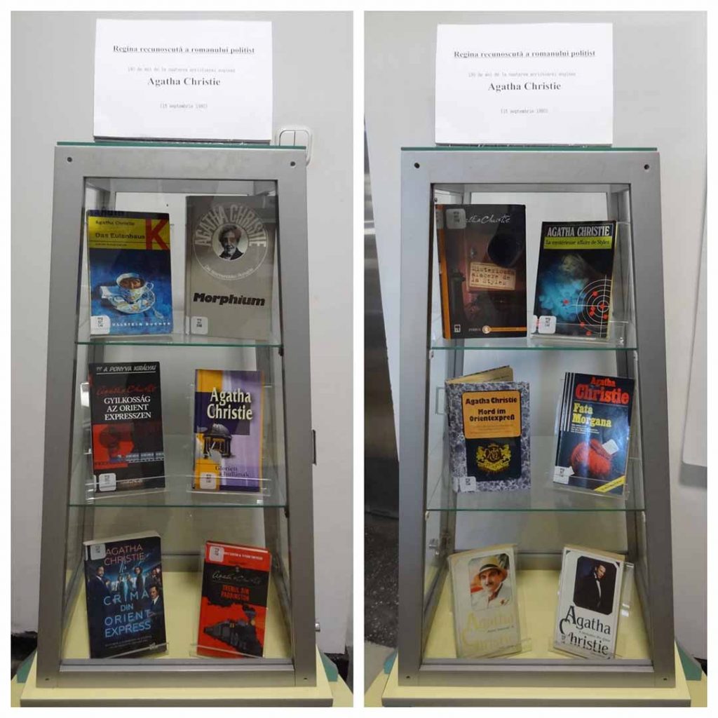 Vitrina de carte la Biblioteca Judeţeană „Petre Dulfu” Baia Mare „Regina recunoscută a romanului polițist”. În colecțiile secției regăsiți numeroase titluri din opera ei, atât în limba română cât și în limba maghiară, precum și câteva titluri în limba germană și limba franceză. (d. 12 ianuarie 1976)