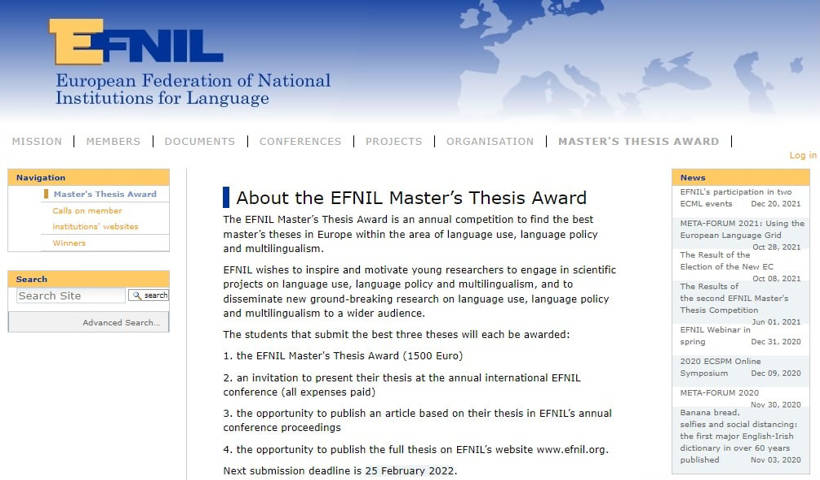 Informații suplimentare, pe pagina EFNIL: http://efnil.org/master-thesis-award