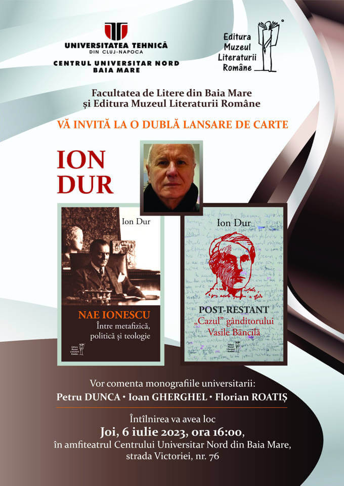 Este vorba despre două volume ale prof. univ. dr. Ion Dur: NAE IONESCU ÎNTRE METAFIZICĂ, POLITICĂ ȘI TEOLOGIE și POST-RESTANT – CAZUL GÂNDITORULUI ”VASILE BĂNCILĂ”, ambele apărute la Editura Muzeul Literaturii Române.