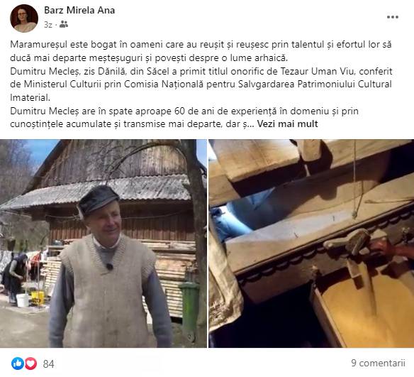 Dumitru Mecleș, zis Dănilă, din Săcel a primit titlul onorific de Tezaur Uman Viu, conferit de Ministerul Culturii prin Comisia Națională pentru Salvgardarea Patrimoniului Cultural Imaterial.