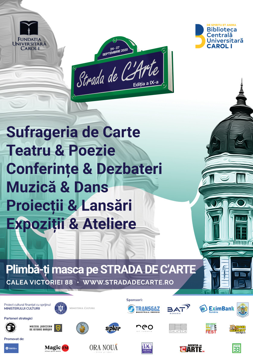 Biblioteca Centrală Universitară „Carol I” în parteneriat cu Fundația Universitară „Carol I” și Muzeul Național al Literaturii Româneorganizează în perioada 23-27 septembrie, ediția a IX-a a Festivalului „Strada de C`Arte”, oferind un mix remarcabil al artelor și științelor, devenind timp de 5 zile cea mai semnificativă cameră urbană cultural-educațională a României, construită în jurul Sufrageriei de Carte organizată de APLER – la Biblioteca Centrală Universitară „Carol I”, Str. Boteanu nr. 1.