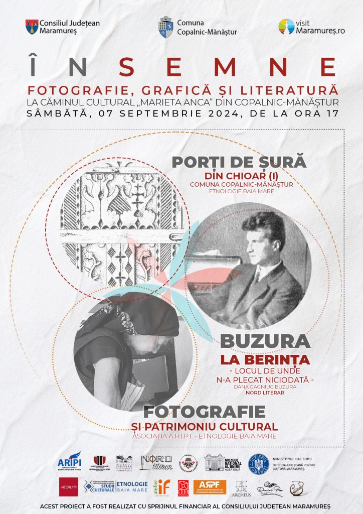 Întâlnirea noastră va avea loc sâmbătă, 07 septembrie 2024, de la ora 17, la Căminul Cultural „Marieta Anca” din Copalnic-Mănăștur, avându-i alături pe inițiatorii, partenerii și colaboratorii implicați în desfășurarea celor trei proiecte: Asociația ARIPI, Revista de Cultură „Nord Literar”, Facultatea de Litere din Baia Mare, Muzeul Județean de Etnografie și Artă Populară Maramureș, Muzeul Național al Unirii Alba Iulia – secția Museikon, Direcția Județeană pentru Cultură Maramureș, Muzeul Județean de Istorie și Arheologie Maramureș, Aedilis proiect, Atelier IF arhitectură, Biroul de arhitectură C.O.B.A, Association Roumaine des Professeurs Francophones – Filiale Maramures, Școala gimnazială „Augustin Buzura” din Copalnic-Mănăștur, Fundația Archeus, Dream Light Visual, Atelier Chira-Art, Asociația Șura.