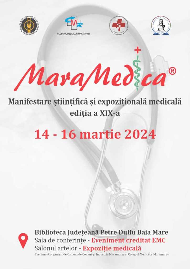 În perioada 14 – 16 martie, Camera de Comerț și Industrie Maramureș în colaborare cu Colegiul Medicilor Maramureș și Biblioteca Județeană „Petre Dulfu” organizează manifestarea științifică și expozițională dedicată profesioniștilor din industria medicală MaraMedica. Cea de-a XIX-a ediție a componentei expoziționale, va avea loc în “Salonul Artelor” din cadrul Bibliotecii Județene „Petre Dulfu” Baia Mare, va aduce în atenția celor interesați tehnologii digitale și soluțiile moderne care răspund provocărilor medicinei generale.