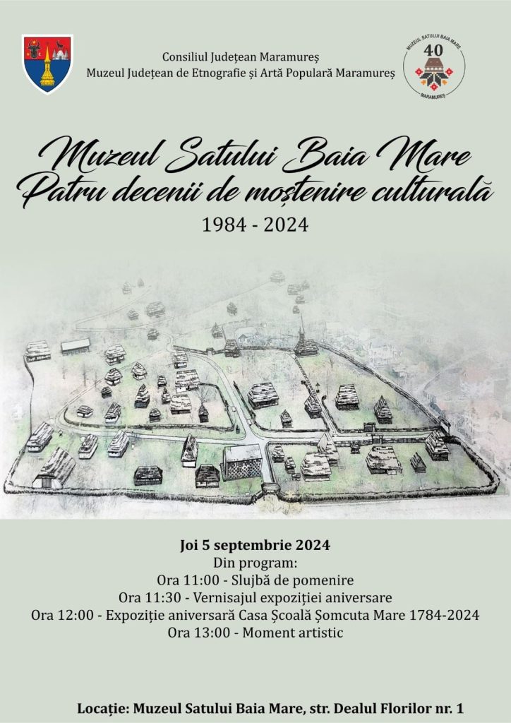 „Cu ocazia împlinirii a 40 de ani de la deschiderea oficială a Muzeului Satului din Baia Mare, joi, 5 septembrie 2024, de la ora 11:00, vă invităm la vernisajul expoziției aniversare pentru a marca acest moment de mare însemnătate pentru instituția noastră.