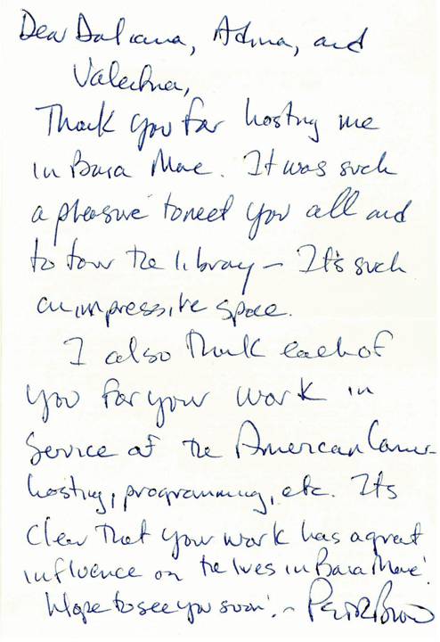 În urma acestei vizite, în semn de apreciere pentru activitatea desfășurată în cadrul Corner-ului American și pentru buna colaborare dintre cele două instituții, am primit scrisori de mulțumire din partea Domniei Sale.