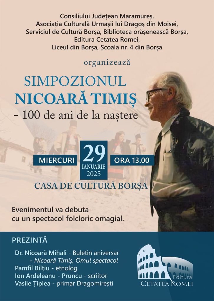 În 29 ianuarie, la Casa de Cultură Borșa, va avea loc Simpozionul „Nicoară Timiș – 100 de ani de la naștere”.